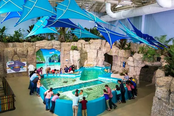 Algunas de las atracciones que tiene para ofrecer son Shark Tank Overlook, donde puedes cruzar un puente colgante sobre un tanque lleno de tiburones, Stingray Touch, que te permite acariciar a las gentiles criaturas marinas, y Gator Alley, hogar de dos raros tiburones blancos. caimanes