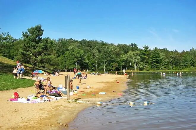 Hickory Run State Park es un paraíso para los amantes de la naturaleza. En verano, el parque ofrece 40 millas de senderos para caminatas y una playa de arena perfecta para nadar. Mientras tanto, el invierno atrae a los aventureros amantes del esquí de fondo.