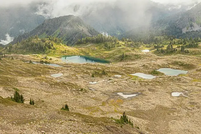 Todavía puede maximizar las hermosas vistas de las montañas y las densas selvas tropicales, incluso si solo tiene tiempo para una caminata de un día. Camina por el sencillo sendero Sunrise View Point de 1,4 kilómetros. Puede acceder al comienzo del sendero desde el estacionamiento de Hurricane Ridge.