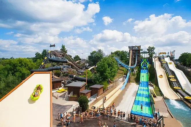 Wisconsin Dells es conocida como la capital mundial de los parques acuáticos y cuenta con al menos 20 parques acuáticos de primer nivel.