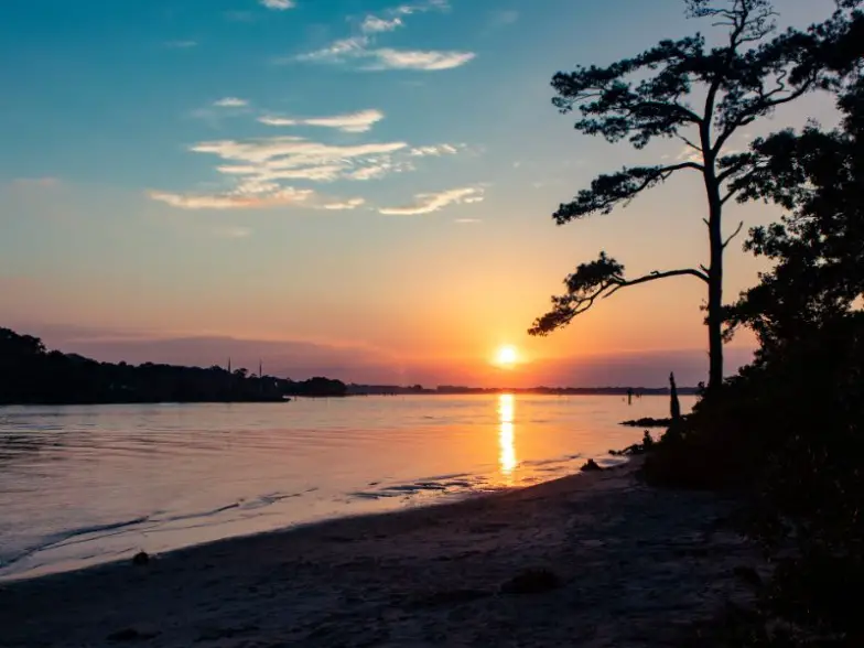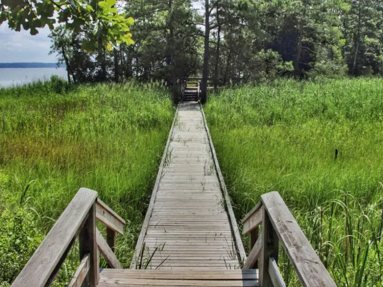 First Landing State Park es un hermoso parque estatal en Virginia que se encuentra en Cape Henry en North Virginia Beach. Una escapada de fin de semana popular en Virginia , el parque abarca 2,888 acres y es un lugar privilegiado para practicar senderismo, andar en bicicleta, navegar, nadar y pescar. Hay algunos campings geniales aquí (más de 200 de ellos) y también cabañas para pasar la noche. Las mascotas pueden quedarse en un campamento con usted por una tarifa adicional por noche. Un lugar popular es Chesapeake Bay Beach, que le permite nadar bajo su propio riesgo. Hay 19 millas de senderos para caminar y andar en bicicleta aquí, y el alquiler de bicicletas está disponible en la tienda del parque. Hay una pequeña tarifa para usar el lanzamiento del bote a menos que pase la noche aquí.