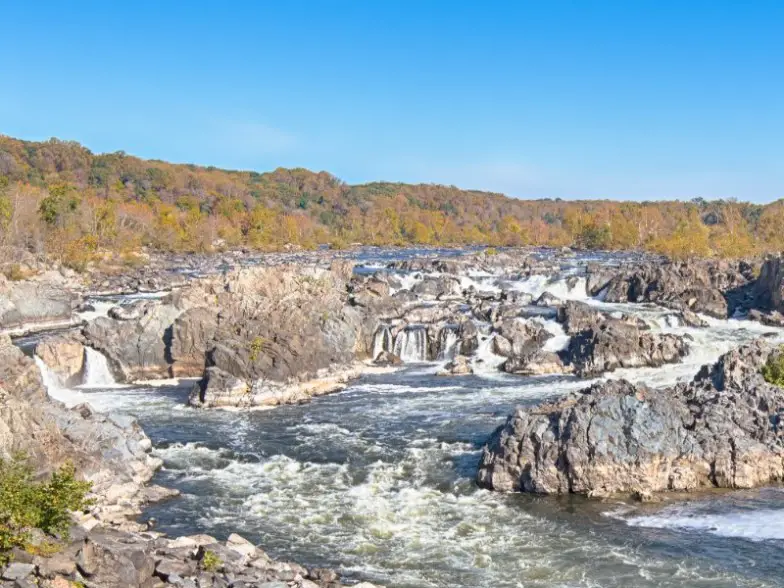 Es imposible no quedar impresionado cuando visite el Parque Nacional Great Falls, donde el río Potomac cae sobre rocas irregulares y atraviesa el desfiladero. Este parque abarca 800 acres y está a solo 15 millas de Washington, DC. Está prohibido nadar aquí debido a las corrientes profundas y mortales del río. En su lugar, venga aquí para caminar por los acantilados de Mather Gorge, ver las exhibiciones del museo en el centro de visitantes y ver las tres vistas de las cataratas cerca de los estacionamientos. A diferencia de muchos parques nacionales, aquí se permiten mascotas, pero solo deben llevar correa en todo momento. Este parque se llena los fines de semana y días festivos, lo que puede significar tiempos de espera para ingresar a la entrada.