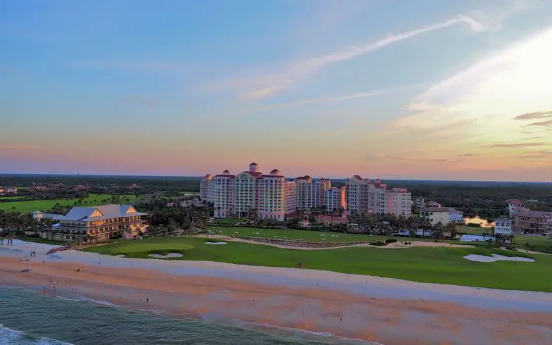 Hammock Beach Resort Golf Resort & Spa en Palm Coast ofrece lujo frente al mar en el Atlántico. El popular resort de playa de Florida está ubicado en un tramo de playa virgen y cuenta con villas y suites de varias habitaciones para familias y grupos grandes. Con esto, también puedes disfrutar de una vida estilo centro turístico con la variedad de beneficios de lujo incluidos. A los niños les encantará el parque acuático en el lugar, donde pueden darse un chapuzón en el pabellón de agua de 91,000 pies cuadrados y flotar por el río lento o dar un paseo por el emocionante canal de agua. Comer en este resort es fácil gracias a sus restaurantes frente al mar, que sirven una deliciosa lista de mariscos frescos, mientras que los relajantes tratamientos de spa son imprescindibles en The Spa at Hammock Beach.