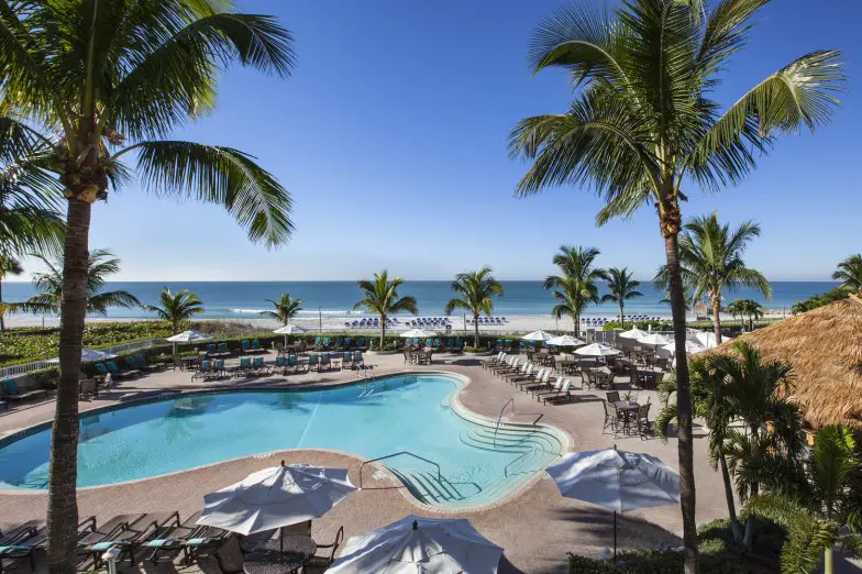 Uno de los mejores resorts en Florida con una playa privada , South Seas Island Resort es una propiedad frente al mar en expansión en Captiva Island con una larga lista de comodidades. Además de 2.5 millas de hermosa playa, la propiedad familiar de 330 acres cuenta con piscinas, toboganes de agua y un campo de golf, así como una reserva de vida silvestre donde los delfines y manatíes vienen a saludar regularmente. Prepare su itinerario con aventuras al aire libre como kayak, vela y paseos en bote, o manténgase activo con ciclismo, golf y tenis. Alternativamente, opte por días de descanso tomando el sol a lo largo de la prístina playa de arena blanca. Cuando te dé hambre, tendrás múltiples opciones gastronómicas para elegir.