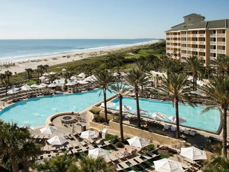 Ubicado en 1,350 acres en la punta de una isla de barrera, Omni Amelia Island Resort es un resort de playa de primera categoría en la costa noreste de Florida. Espere encontrar hermosas opciones de alojamiento frente al mar, así como piscinas de resort de clase mundial, golf de campeonato y un spa de servicio completo. Refréscate con un chapuzón en la piscina de borde infinito solo para adultos, luego llénate con un suculento bistec en Bob's Steak & Chop House, pescados y mariscos frescos en Verandah o hamburguesas en Falcon's Nest. El complejo frente al mar incluso cuenta con un centro comercial en el lugar con boutiques encantadoras y un campamento para niños y un Centro de la Naturaleza galardonados.