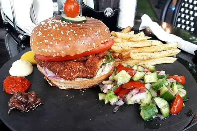La St. Lucia Burger es algo que debes probar si quieres disfrutar de una rica hamburguesa. Consiste en huevos fritos, pepinos, queso cheddar, tomates y tocino.