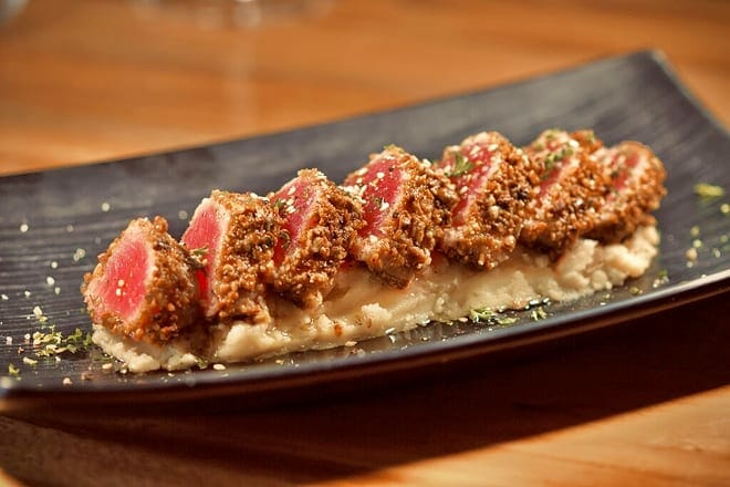 Pruebe un plato único en su tipo ordenando el Tuna Poke. Incluye rábanos, shiitake, aceite de sésamo, aguacates, anacardos, edamame tostado, wonton crujiente, quinoa y muchos otros.