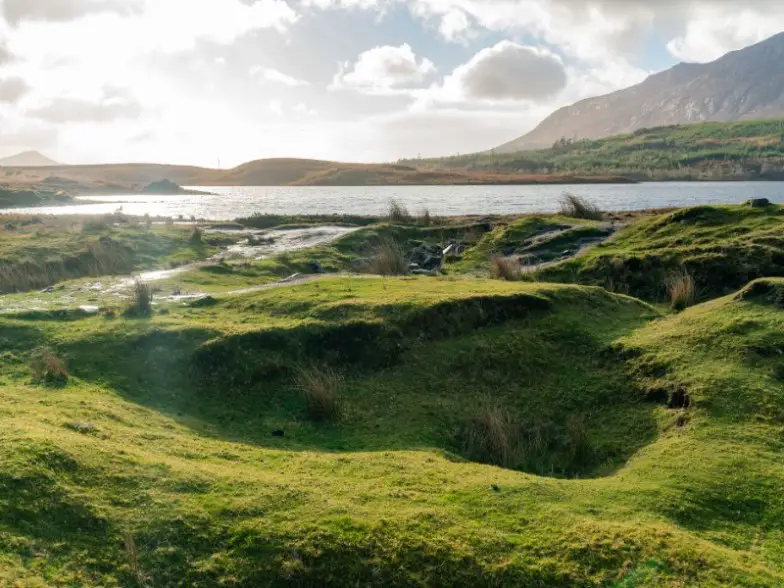 Ubicado en el noroeste del condado de Galway, el Parque Nacional de Connemara es un paraíso para los excursionistas que ofrece de todo, desde caminatas cortas y pintorescas hasta rutas desafiantes de varios días. A lo largo de la región de Connemara hay kilómetros y kilómetros de paseos posibles, pero justo en el parque, puede disfrutar de un paseo rápido por el sendero natural Ellis Wood, que comienza cerca de la oficina del parque. La caminata de media milla lo llevará a una cascada junto con una variedad de árboles, plantas y flores silvestres en el verano. Diamond Hill Loop Walk comienza en el centro de visitantes y cubre un poco más de 4.3 millas; desde la cima, podrá contemplar la montaña Tully que se eleva sobre el puerto de Ballynakill, los Twelve Bens e incluso las torres de Kylemore Abbey.