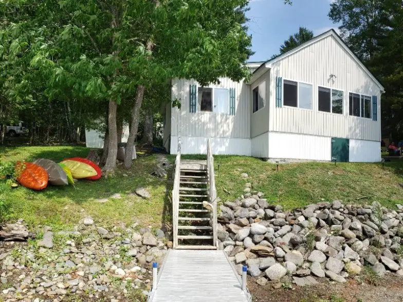 Pine Rock Point Cottage, un alquiler de cuatro habitaciones para ocho personas, se encuentra junto a Haines Landing Marina y ofrece magníficas vistas del lago Mooselookmeguntic y las montañas desde muchos puntos de vista, incluido el dormitorio principal. Viene con tres kayaks y tiene un área de entrada gradual que facilita el acceso al agua. La natación también es posible. También tendrá una parrilla a gas y un brasero junto con todas las necesidades.