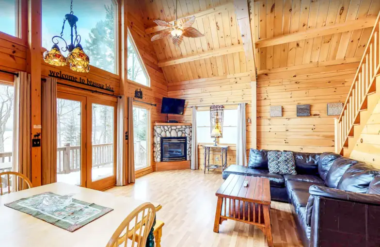 Ubicada en Loon Lake, esta histórica cabaña de troncos de dos pisos tiene capacidad para seis personas en dos habitaciones, pero si necesita más espacio, se puede alquilar con la cabaña Tarry-A-While de dos habitaciones que se encuentra junto a ella. Hay una cocina completa con todos los elementos esenciales y una gran parrilla de carbón justo al lado del porche junto con una gran chimenea de esquina con mucha leña suministrada. El anfitrión incluye una canoa, un kayak y también algunos aparejos de pesca; es posible que incluso pueda pescar su propia comida directamente desde el muelle.