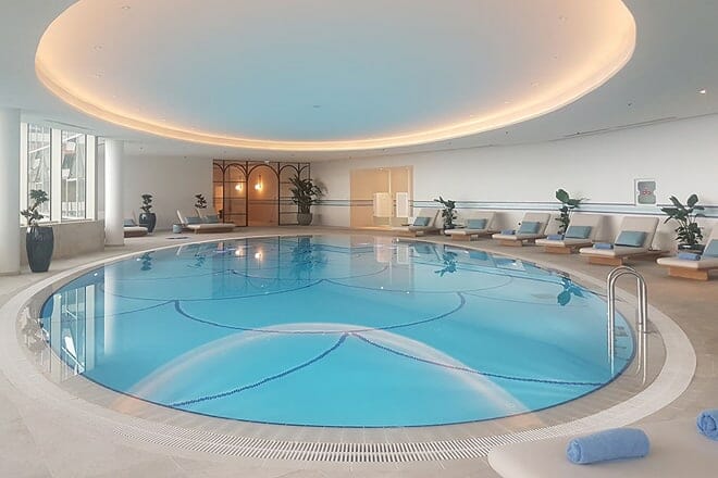 Se dice que es uno de los mejores de la zona, el spa cuenta con una piscina cubierta de 18 metros, una piscina de hidroterapia con chorros de masaje y una cascada, saunas y muchos tratamientos faciales y corporales elegantes.