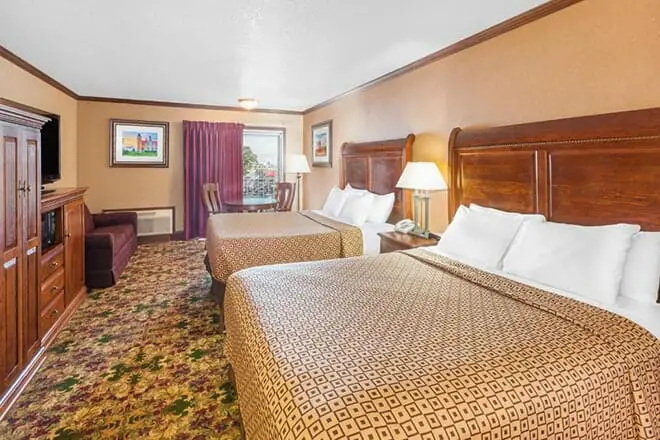 No tiene que gastar mucho dinero en alojamiento costoso para disfrutar de comodidades como jacuzzis en la habitación, un jacuzzi, amplio estacionamiento, mesas de picnic y más.