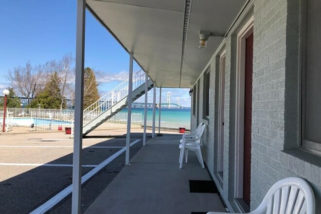 Esta propiedad es el lugar perfecto para hospedarse cuando busca hoteles increíbles en Mackinaw City con vista al lago para disfrutar de la mejor escapada frente a la playa.
