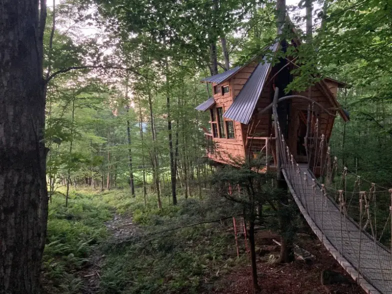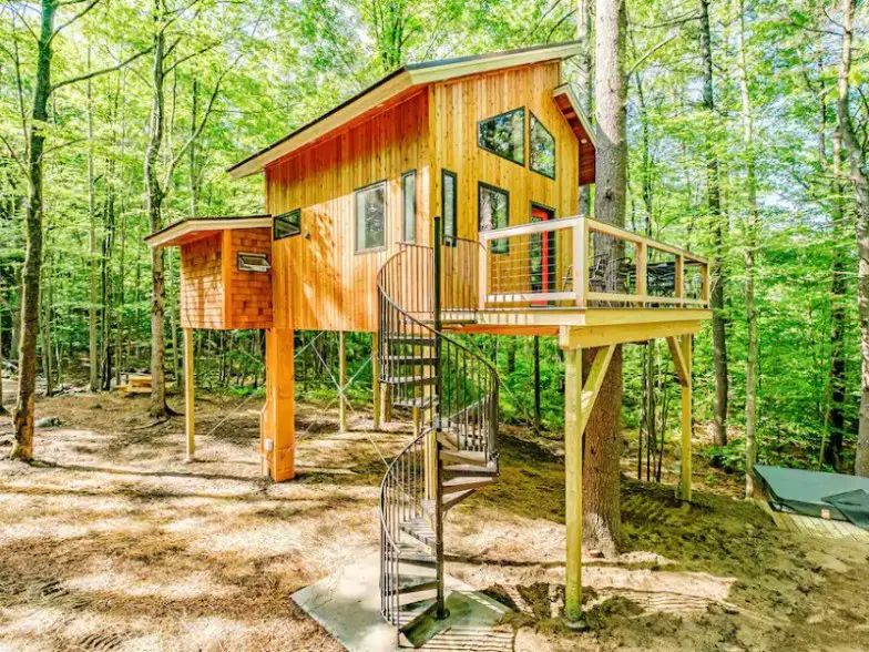 Esta casa del árbol, uno de los alojamientos de Airbnb más exclusivos de los EE . UU ., es un paraíso para los amantes de las cascadas, está rodeada de bosques con senderos para caminatas y brinda acceso a piscinas y cascadas privadas. Todo fue construido a mano e incluye tres dormitorios, con capacidad para cinco. También encontrará lo que el anfitrión llama "una colección de arte provocativa, siglos de antigüedades y una colección ecléctica de música grabada".