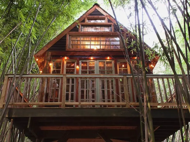 Presentada en varios programas de televisión, películas y videos musicales, esta casa del árbol única está escondida en un bosque de bambú privado en una granja de rescate en funcionamiento con alpacas, llamas, gallinas y perros. Está repleto de antigüedades y camas lujosas, incluida una cómoda cama de cuerda giratoria. Desde la gran claraboya, podrás contemplar el bambú zen que se balancea.