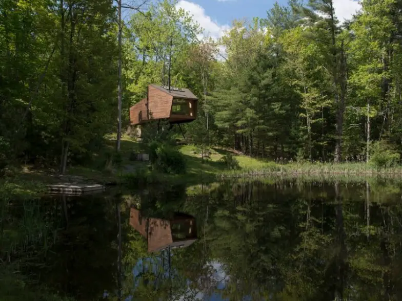 A solo 15 minutos de la ciudad de Woodstock, Willow Treehouse tiene vista a un estanque en el que se puede nadar, lo que brinda un escape maravilloso para los amantes de la naturaleza. Se asienta sobre 34 acres e incluye ventanas panorámicas para disfrutar de las vistas, un jacuzzi y una chimenea para relajarse mientras contempla una colorida puesta de sol.