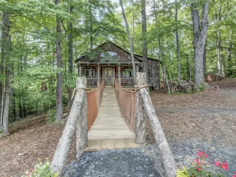 Uno de los alquileres de vacaciones más románticos en los EE . UU ., este Airbnb es una joya escondida. Ubicada en 15 acres apartados entre las tranquilas colinas y los valles de las Montañas Apalaches en la cima de una colina, esta casa en el árbol para dos ofrece magníficas vistas de la montaña Pigeon. Ideal para una estadía romántica en pareja, incluye un balcón con mosquitero en el dormitorio y una bañera japonesa Ofuro en una plataforma de relajación separada entre los árboles.