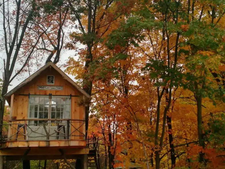Los aventureros que buscan un escape fuera de la red apreciarán esta rústica casa en el árbol ubicada en un dosel de árboles, especialmente ideal en otoño, rodeada de ricos escarlatas, naranjas y amarillos brillantes. No hay electricidad ni Wi-Fi, pero estarás rodeado de una naturaleza que disipa el estrés. En las noches frías, tendrá un calentador de gas propano y muchas mantas adicionales para mantenerse caliente.