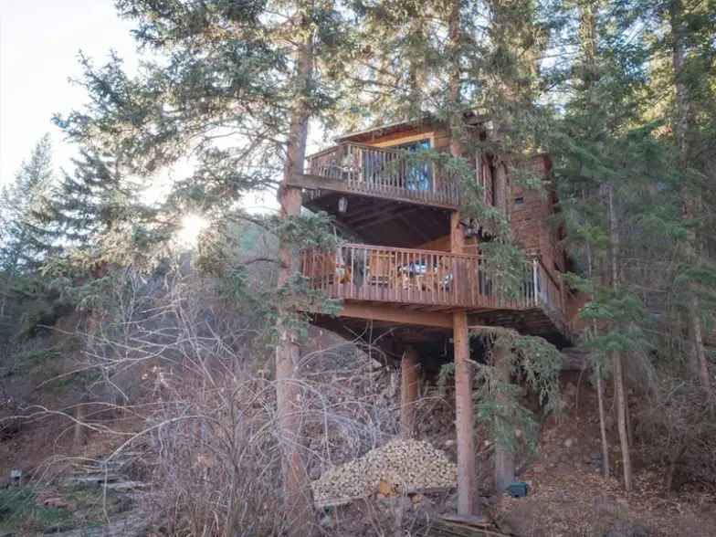 Adjunta a cuatro abetos de 100 pies de altura a 25 pies del suelo, esta casa en el árbol se asienta en dos acres y se accede a ella a través de una escalera de caracol. Incluye dos balcones que brindan amplias vistas panorámicas del espectacular paisaje de Colorado junto con una estufa a leña, una cocina grande, un baño con ducha de piedra y un dormitorio tipo altillo para dormir, con capacidad para seis personas. Justo debajo hay una mesa de picnic y un área para fogatas.
