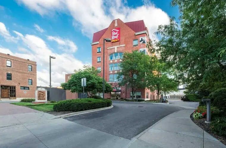 Red Roof PLUS+ Columbus es un hotel económico cerca del Teatro Ohio y COSI Columbus conocido por su edificio de ladrillo rojo.