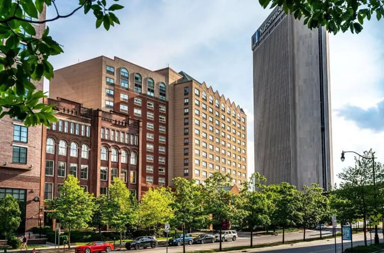 A los aventureros modernos les encantará estar en el centro de toda la diversión, por lo que este rascacielos es una excelente opción para grandes hoteles en el centro de Columbus.