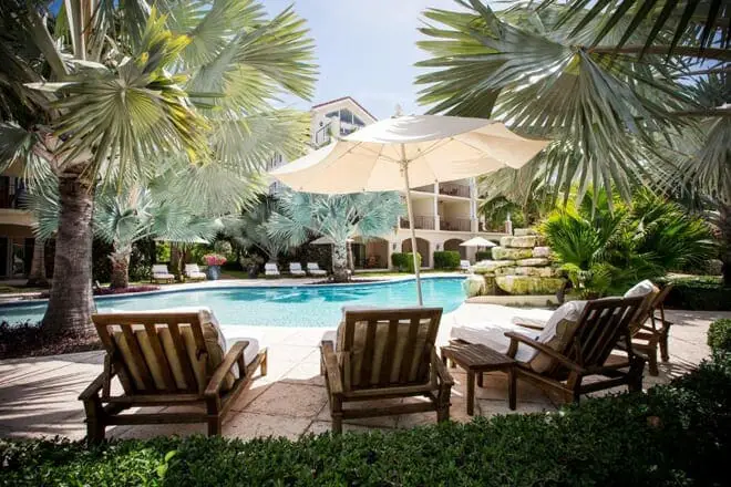 The Palms es un hotel de lujo de 5 estrellas con 72 suites en Grace Bay Beach en Providenciales.