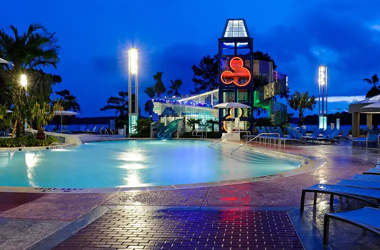 Las representaciones más grandes que la vida de algunos de sus personajes favoritos de Disney y las vibraciones retro de este hotel lo convierten en uno de los mejores hoteles de Orlando. No solo eso, sino que tiene una piscina inspirada en Fantasia bastante impresionante.