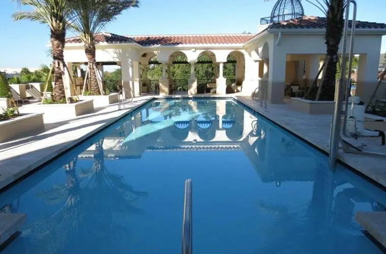 Una enorme piscina con forma de laguna, cascadas azules y palmeras imponentes te harán sentir como si estuvieras de vacaciones en los trópicos. Por eso, este hotel paradisíaco es el alojamiento perfecto si te alojas en la ciudad para celebrar una boda relajante.