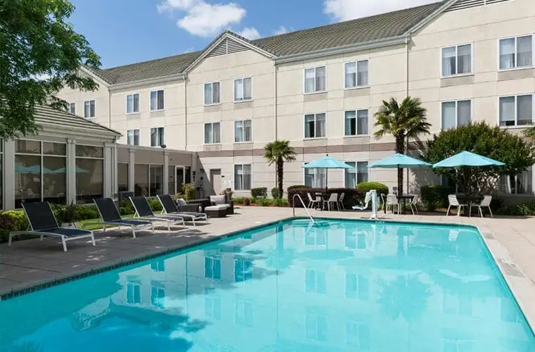 El Wyndham Garden Sacramento Airport Natomas ofrece servicios tranquilos y vistas al lago si busca una suite de hotel en Sacramento con un alojamiento económico.