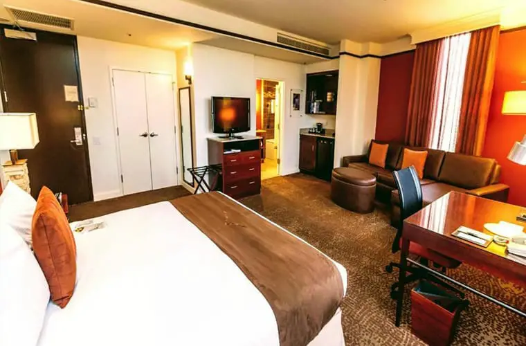 Sus opulentas habitaciones cuentan con baños de mármol, cafeteras Keurig, televisores de pantalla plana de 42 pulgadas con canales premium, lujosas toallas, ropa de cama de lujo, tonos naturales y más.