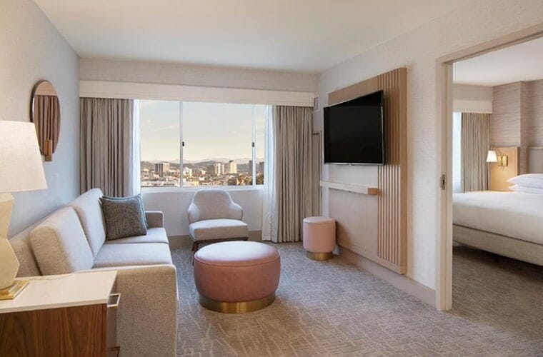 La ubicación también es increíble, y se puede caminar hasta una gran cantidad de tiendas y restaurantes, incluido Third Street Promenade. Otras ventajas notables en este destino único incluyen un desayuno buffet, un gimnasio de última generación y un spa completo.