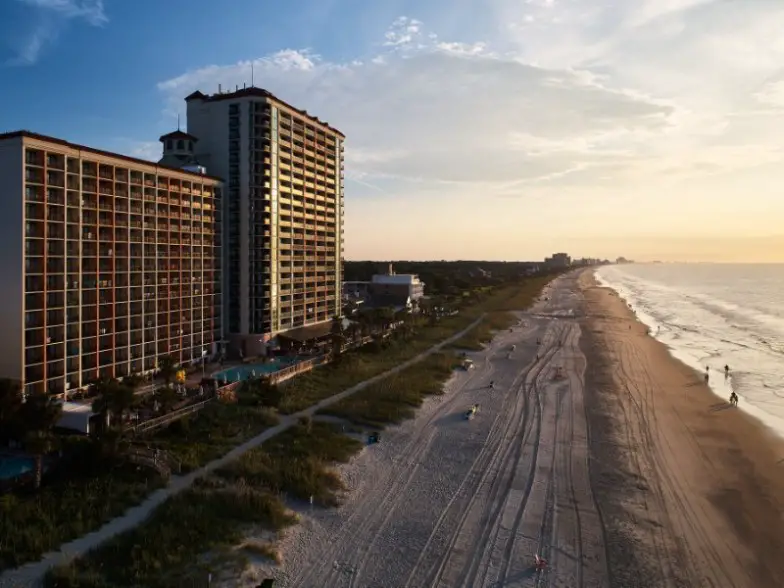 Ubicado directamente en la playa, el Hampton Inn and Suites Myrtle Beach Oceanfront está convenientemente ubicado cerca de muchas atracciones populares como Broadway at the Beach y el nuevo Sky Wheel. Todas las habitaciones y suites cuentan con camas cómodas, televisores de 32 pulgadas, microondas, refrigeradores y balcones con impresionantes vistas al océano. Mientras que el hotel ofrece dos ríos lentos, siete piscinas en total y un desayuno caliente gratis todos los días. O, si usted y su pareja tienen prisa por ir a la arena, ¡pueden tomar un desayuno Hampton on the Run y estar en camino a la playa en poco tiempo!