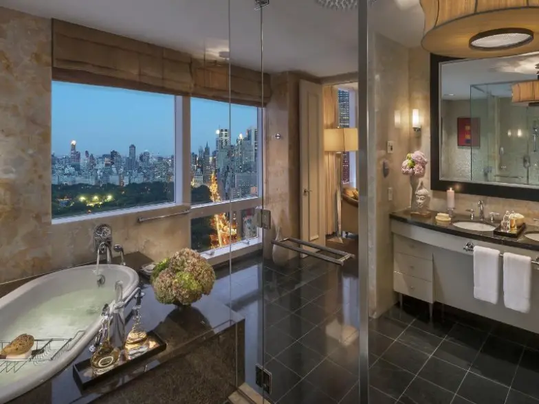 Ubicado en los pisos 35 a 54 de la torre norte del Time Warner Center, el Mandarin Oriental New York ofrece impresionantes vistas de Central Park y muchos lujos modernos. Uno de los hoteles más lujosos de Manhattan, atrae a numerosas celebridades y miembros de la alta sociedad que buscan una ubicación idílica y un servicio de clase mundial. Su piscina de entrenamiento cubierta de 75 pies es solo otra de sus muchas características destacadas. Las habitaciones con vista a la ciudad, con muebles de madera de cerezo asiático y baños de mármol, tienen vista al horizonte de Manhattan desde los pisos 38 y 39 e incluyen ventanas del piso al techo desde donde puede ver el amanecer sobre el parque desde una cómoda cama tamaño king todos los días. Mañana.