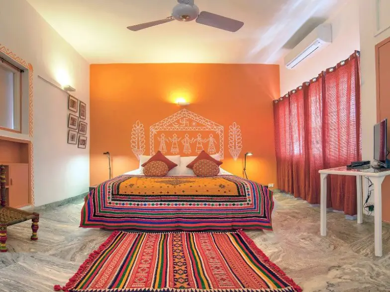 Para disfrutar de un ambiente de bed and breakfast boutique, alójese en Haveli Hauz Khas, que es una encantadora casa de huéspedes en el sur de Delhi. Hay seis habitaciones tradicionales aquí, y está cerca de algunos excelentes restaurantes y en una zona residencial tranquila y segura. Las comodidades incluidas son baños privados, casilleros en la habitación, servicio de limpieza diario, Wi-Fi gratis y la opción de un desayuno continental o indio. Este es un lugar favorito para hospedarse entre mujeres que viajan solas y familias debido a su ubicación y servicios. Se proporcionan instalaciones de lavandería y la decoración general es hermosa con durries tejidos a mano, madera tallada y telas tradicionales. La gran sala Banni, por ejemplo, está diseñada teniendo en cuenta la región artesanal de Banni en Kachchh, Gujarat.