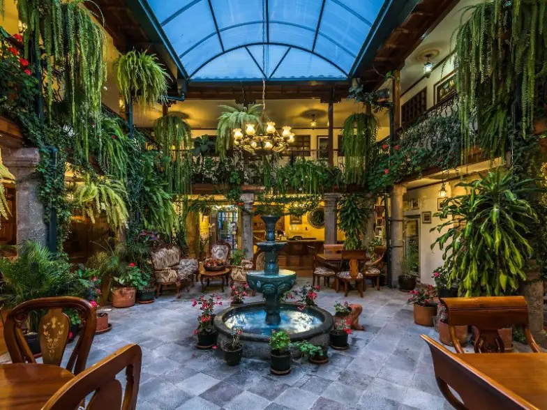 También ubicada en el centro histórico en la Plaza San Francisco, Casa Gangotena está cerca de varios museos, iglesias y otros edificios históricos. Desde la terraza del tercer piso de la mansión del siglo XVIII, puede disfrutar de pintorescas vistas de la Iglesia de San Francisco. Las lujosas habitaciones incluyen desayuno y una actividad diaria, como un recorrido histórico o una degustación de chocolate. Asegúrese de unirse al té Quinteñan High que se sirve en el patio estilo invernadero. Aquí puedes degustar el cacao fino de aroma ecuatoriano, una mazorca de cacao muy codiciada mientras te relajas en los cómodos sofás entre las orquídeas y otras plantas.