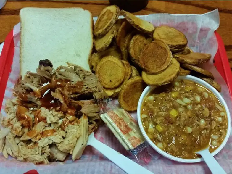 Jackson, Georgia, ha adquirido recientemente su reclamo a la fama al aparecer como la ciudad de "Hawkins" en Stranger Things de Netflix, pero The Blind Pig ha sido un favorito querido durante años. En una modesta cabaña cerca del agua, las costillas más tiernas y carnosas se ahuman junto con magníficas carnes a la barbacoa. Medallón de papas fritas, estofado Brunswick y algunos frijoles horneados con azúcar moreno realmente buenos completan este menú sureño perfecto.
