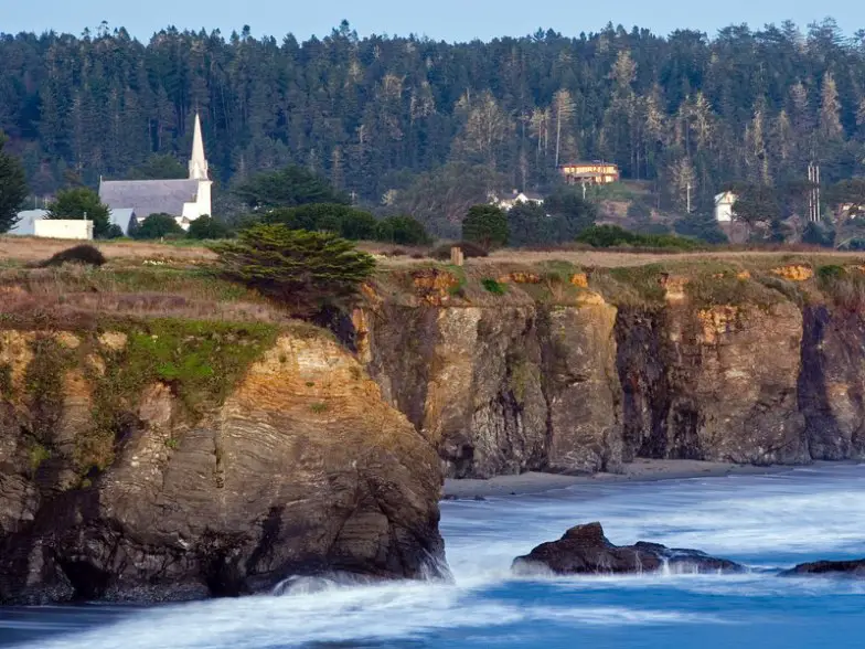Esta colonia de artistas se encuentra en lo alto de un acantilado con vista al Océano Pacífico, y una vez se usó como escenario para la popular serie de televisión, "Murder, She Wrote", en la que se duplicó como Cabot Cove, Maine debido a su sabor de Nueva Inglaterra. En medio del asombroso paisaje que incluye una costa escarpada que recuerda a Irlanda, se encuentra un centro lleno de casas victorianas, todo tipo de sabrosos restaurantes, B & B, un museo, boutiques exclusivas y tiendas de regalos. Las flores silvestres del Parque Estatal Mendocino Headlands se asientan en las afueras de la ciudad, donde senderos tranquilos conducen a calas y playas aisladas que sirven como un lugar ideal para observar las ballenas y los leones marinos que pasan.
