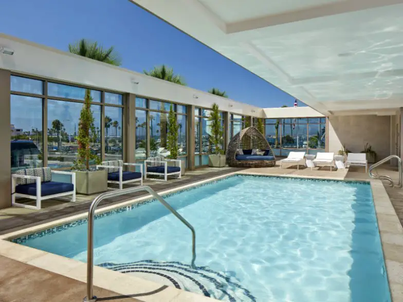 Hilton Garden Inn San Diego Downtown/Bayside está a tiro de piedra de Waterfront Park, por lo que las vistas son excelentes. Las habitaciones son sólidas y agradablemente predecibles, y el área de la piscina cuenta con una bañera de hidromasaje parcialmente cubierta que ofrece una sombra muy apreciada. Las áreas de descanso al aire libre se han acondicionado con chimeneas y muchos asientos. Otros beneficios incluyen un restaurante informal de mariscos, un gimnasio abierto las 24 horas y una tienda de conveniencia, junto con algunos juegos divertidos para los niños.