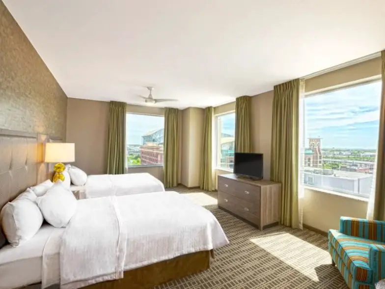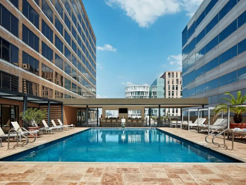 También puede reservar una habitación en el Homewood Suites by Hilton Houston Downtown para mantenerse fiel a la marca Hilton. Este hotel está justo en el centro y a cuatro minutos a pie del Centro de Convenciones de Brown y es un hotel de primera cerca de Minute Maid Park . Ofrece un evento social por la noche de cortesía con bebidas y platos pequeños de lunes a jueves, así como desayuno y Wi-Fi gratis. Hay una piscina al aire libre en el lugar para usar y también un gimnasio. Para los viajeros de negocios, puede utilizar las 10 salas de reuniones y hasta 5882 pies cuadrados de espacio total para eventos. Se permiten mascotas en este hotel Hilton de hasta 50 libras y dos mascotas por habitación por una tarifa de $75.