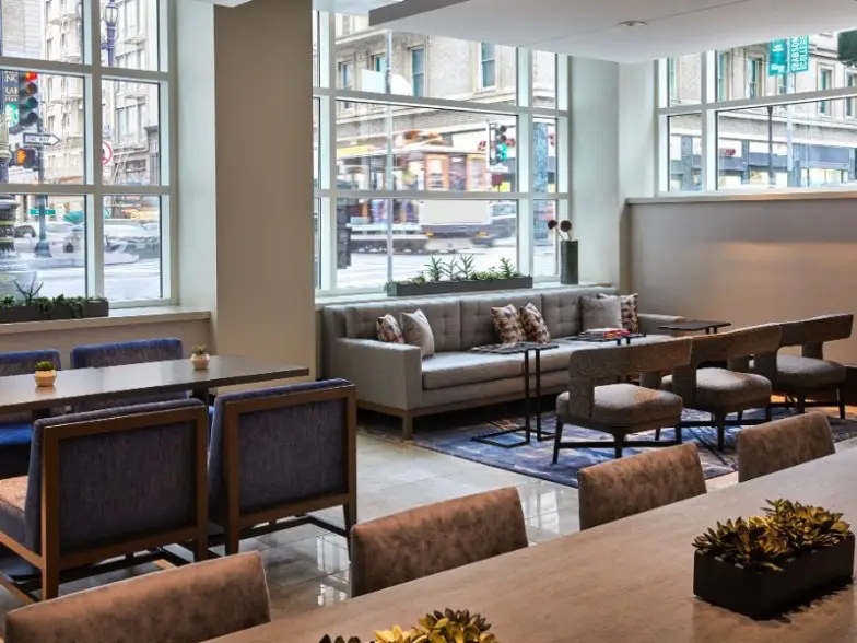 San Francisco Marriott Union Square es un lugar popular para hospedarse tanto para viajeros de negocios como de placer. Es un hotel estilo boutique que lo ubica cerca de Union Square y Chinatown. Las suites aquí son ideales para familias que viajan porque tienen amplias salas de estar con sofás cama. Hay un gimnasio abierto las 24 horas en el lugar, 10,000 pies cuadrados de espacio para eventos y hermosas ventanas de gran tamaño que le brindan vistas de la bahía. Los huéspedes pueden disfrutar de la cocina de estilo californiano en The Restaurant y cócteles en bin480, luego hacer ejercicio en el gimnasio del hotel o utilizar el centro de negocios.