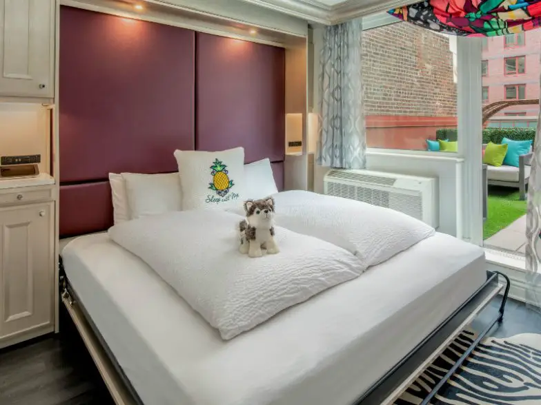 Staypineapple New York está cerca de Manhattan, Times Square y una lista de sitios y atracciones emblemáticos de la ciudad de Nueva York. Las habitaciones son peculiares e individualizadas para llevar a los huéspedes más allá de la habitación estándar, pero cuentan con mesas de trabajo extraíbles, áreas de descanso e impresionantes vistas de la ciudad. El ingenioso espacio también permite que tu perro se quede contigo. Como parte de sus servicios para huéspedes, ofrecen Morning Bites, que son mini pasteles y café, y por la tarde sirven Afternoon Delights, sus exclusivas galletas de piña y café. Esta es una opción sólida si está buscando un alojamiento económico con fácil acceso a la ciudad.