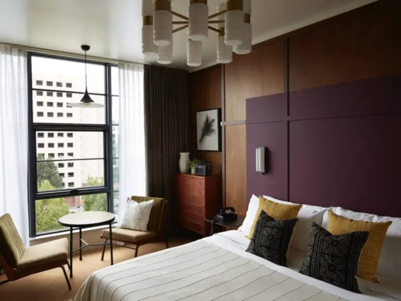 También puede traer a su perro para que se quede con usted en el Woodlark en Portland, y el costo para hacerlo está incluido en la tarifa de servicios por noche de $24 más impuestos. El hotel da la bienvenida a las mascotas e incluso ofrece numerosos servicios para mascotas, servicio de habitaciones para mascotas y un menú espiritual para mascotas. The Woodlark está ubicado en el centro de la ciudad de Portland y está rodeado de muchas tiendas y restaurantes. Los huéspedes que se hospedan aquí pagan una tarifa de servicios y luego obtienen acceso a alquiler de bicicletas, clases de gimnasia, un gimnasio abierto las 24 horas, los 7 días de la semana, beneficios para mascotas y más comodidades exclusivas. El hotel también tiene una colección de arte local en el lugar y en exhibición en los espacios públicos del hotel, incluidas obras abstractas y modernas en el nivel inferior y el vestíbulo del hotel. Bullard es el restaurante del hotel que combina las tradiciones culinarias de Texas y Oregón, Abigail Hall es un gran bar para cócteles,