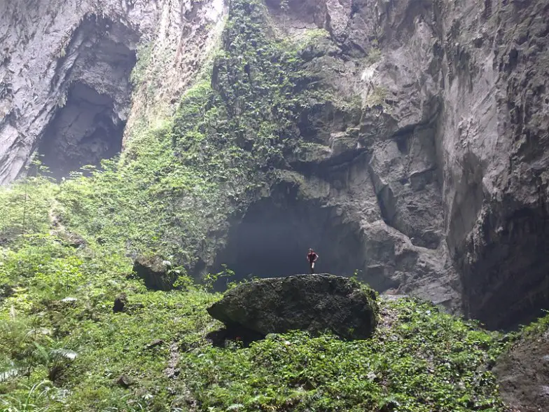 Ubicada en el corazón del Parque Nacional Phong Nha-Ke Bang, declarado Patrimonio de la Humanidad por la UNESCO, en la provincia de Quang Binh en el centro de Vietnam, esta cueva de difícil acceso ofrece una expedición de otro mundo para los buscadores de emociones. A la que solo se accede mediante una aventura de campamento de varios días, puede caminar hacia las profundidades de esta cueva de tres millas de profundidad, 500 pies de ancho y 656 pies de altura para admirar su belleza natural.
