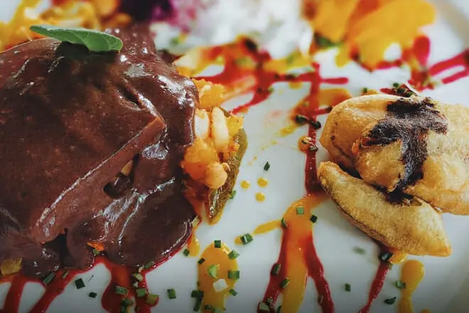 El plato de Pollo al Chocolate es increíble.