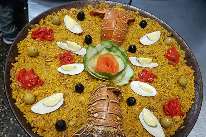 El arroz mezclado con pescado, camarones y carne de langosta es una increíble interacción de sabores de mariscos.