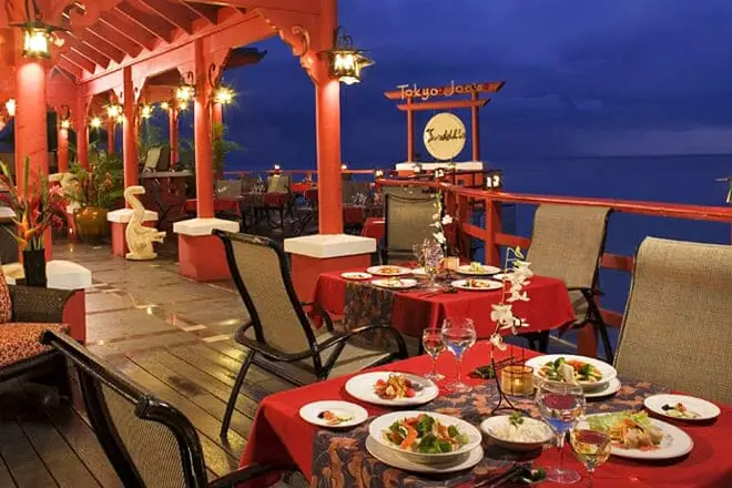 Tokyo Jo's es un restaurante asiático informal que presenta un estilo isleño oriental en Sandals Montego Bay .