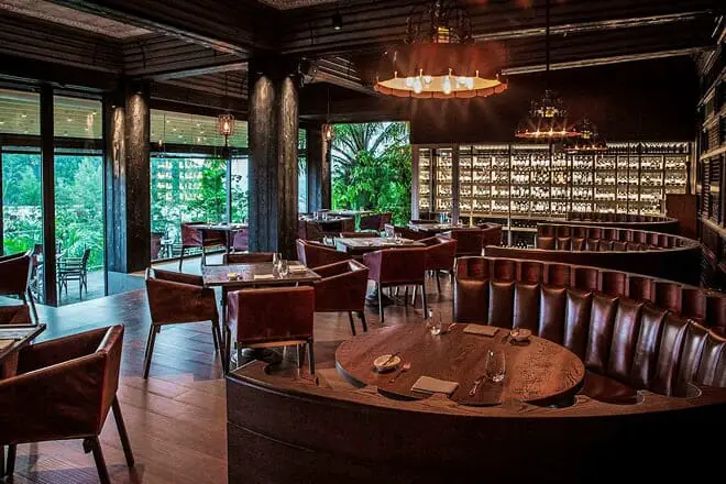El aspecto sofisticado de esta parrilla es una de las principales razones por las que es uno de los restaurantes mejor valorados de Phuket.