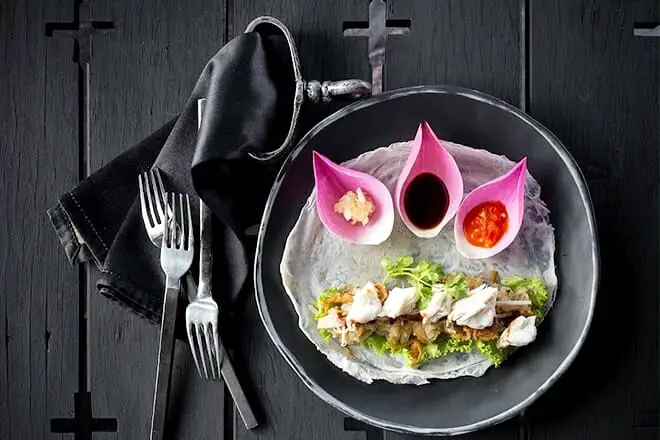 No dejes de probar el cangrejo frito con ensalada de papaya y el Pho de mariscos.