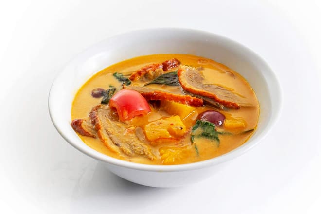 Obtenga platos deliciosos como el cangrejo al curry y el cerdo cocido a fuego lento.