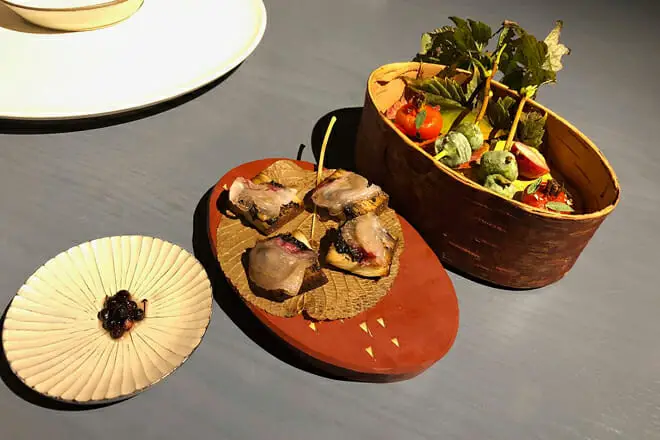 Inua, los banquetes de varios platos del ex chef de Noma, Thomas Frebel, reflejan una perspectiva nórdica audaz y magnífica sobre los ingredientes japoneses de temporada, lo que los convierte en una visita obligada para los amantes de la gastronomía.